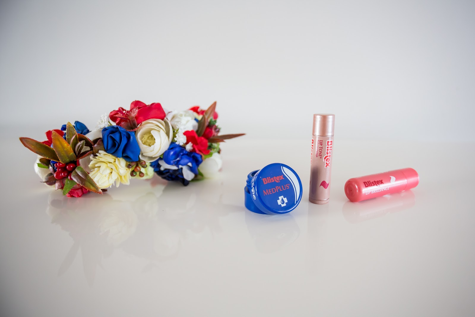 Počas roka je neodmysliteľnou súčasťou mojej kozmetickej taštičky balzam na pery. Značka Blistex sa mi v tomto smere osvedčila. Už niekoľko mesiacov používam pri popraskaných perách modré balenie. Keď si natieram tento druh na pery, vždy mi ich pekne vylieči, hydratuje a aj jemne chladí. Hnedý a červený Blistex dokonca jemne farbí. Takže počas dní, keď nemám na perách rúž, používam túto alternatívu. Okrem balzamov si užívam aj nosenie nádhernej kvetinovej čelenky od LeQuaria.