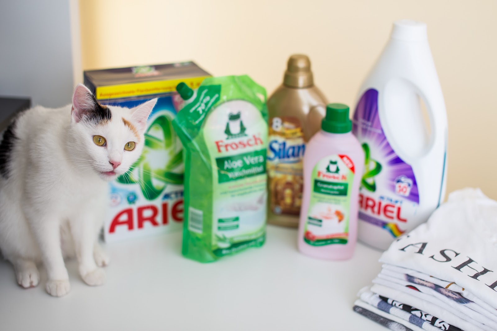 Ak sledujete blog na Instagrame alebo na Facebooku, určite ste postrehli výrobky od Drogerka.sk. Teším sa, že po novom nemusím merať ďalekú cestu až k západným susedom, aby som si mohla nakúpiť rakúsku drogériu, ale stačí mi objednať to, čo potrebujem z tejto stránky. Navyše, doprava je veľmi rýchla a je možné si ju zarezervovať kamkoľvek na Slovensko. Ja som si nákup objednala vo štvrtok doobeda a v piatok som ho mala už v Košiciach. Veľmi ma to v pozitívnom slovazmysle prekvapilo a potešilo. Akonáhle mi prišla zásielka domov, hneď som začala testovať. Bola som zvedavá najmä na porovnanie pracích prostriedkov zo Slovenska s tými rakúskymi. Nechcem zatracovať slovenské produkty a znížiť sa na známe tvrdenie „na Slovensku je všetko zlé“ (pretože aj u nás nájdeme mnoho kvalitných a výborných výrobkov), ale čo sa týka pracích prostriedkov, musím sa prikloniť na stranu tých z Rakúska. Keďže z minulosti som mala odskúšaný napríklad prací prášok Ariel alebo aviváž Silan zakúpenú na Slovensku, vedela som ju porovnať s baleniami od západných susedov. Skutočne je bielizeň belšia po praniach s rakúskymi prostriedkami. Po niekoľkých praniach dokonca zmizli škvrny (ktoré ma už dlhodobo hnevali) a vôňa prádla je intenzívnejšia. Veľmi ma prekvapili najmä výrobky Frosch. Na FB ste mi viacerí písali, že s ňou máte pozitívne skúsenosti. To isté môžem potvrdiť pri všetkých produktoch tejto značky. S avivážou, pracím gélom, čističom toaliet a octovým prostriedkom (ten obzvlášť odporúčam, pretože nezapácha tak výrazne ako klasický ocot, no čistí rovnako výborne kachličky a hlavne sprchové kúty) som bola nadmieru spokojná. O niečo menej som bola nadšená z rakytníkového prostriedku na umývanie riadu. Častejšie som ho totiž musela pridávať na hubku. Avšak krásne vonia, pekne umýva a rovnako ako ostatné produkty Frosch má označenie Bio a je šetrný k životnému prostrediu. Z ďalších výrobkov z Drogerka.sk som veľmi spokojná s čistiacim prostriedkom na odtoky a so sprejom na osvieženie bielizne (využívam ho najmä po návšteve zafajčených priestorov). Keďže pomaly dochádzajú zásoby výrobkov na upratovanie a čistenie, tak rozhodne si ďalšiu várku budem objednávať z tejto stránky. Mimochodom, ako som vám písala na sociálnych sieťach, že naša mačička Jackie je inšpektorkou pier, milou psychologičkou, precíznou kontrolórkou kvality jedál a škatúľ, tak asistuje mi pravidelne aj pri upratovaní a praní.