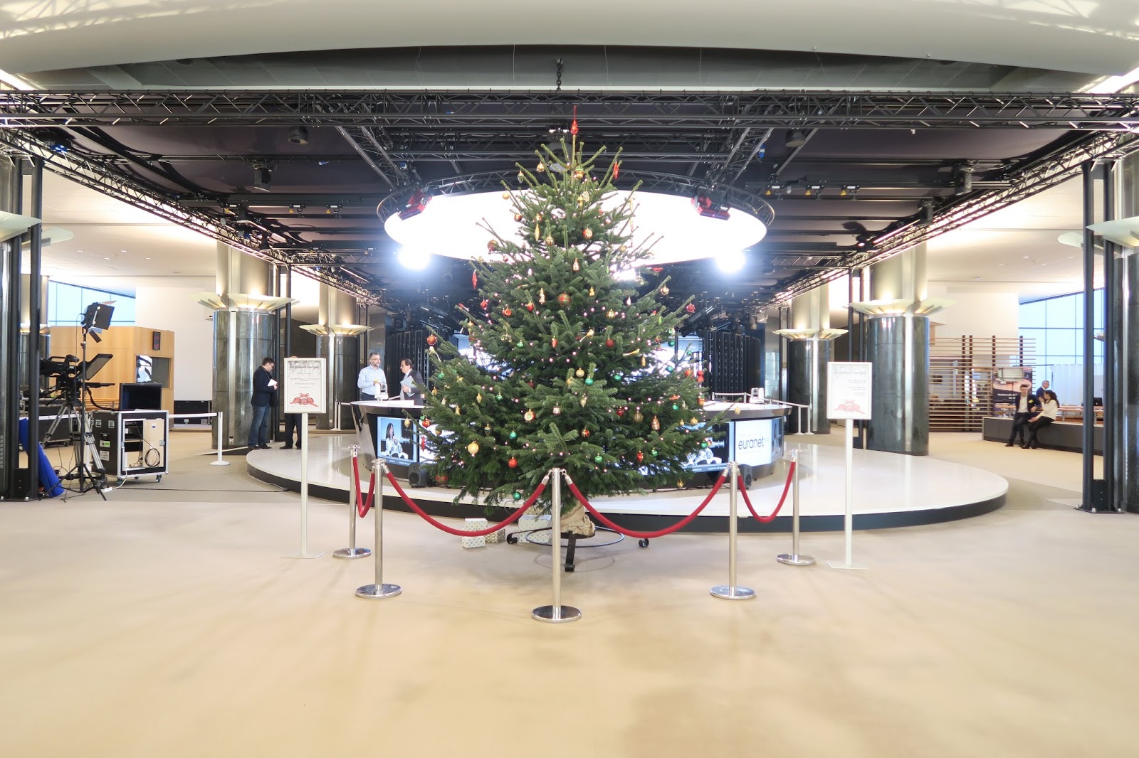 Ani v európskom parlamente nezabudli napriek zhonu a pracovnému stresu na vianočný stromček. Tento pochádza z Rakúska a nájdete ho neďaleko televízneho štúdia.