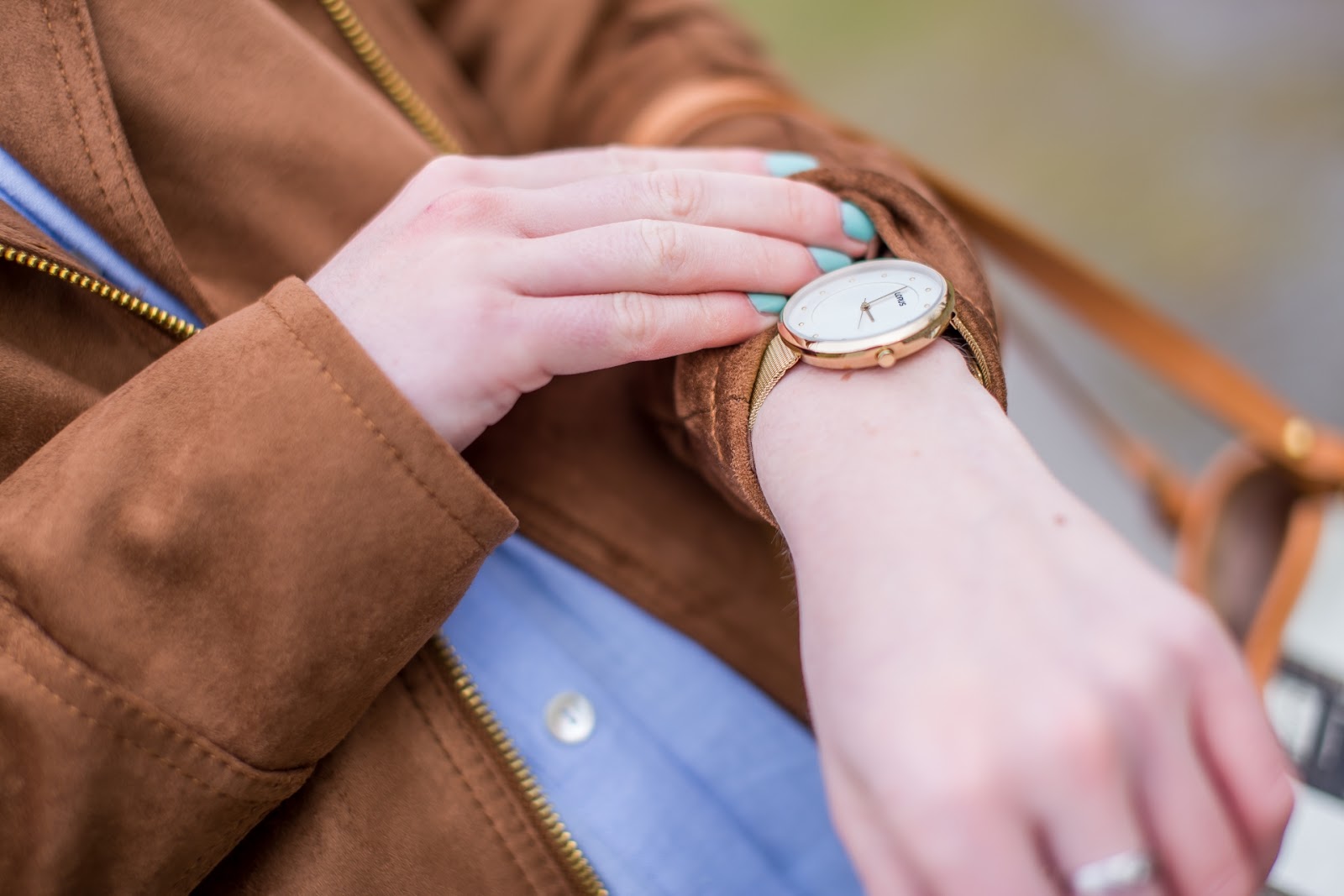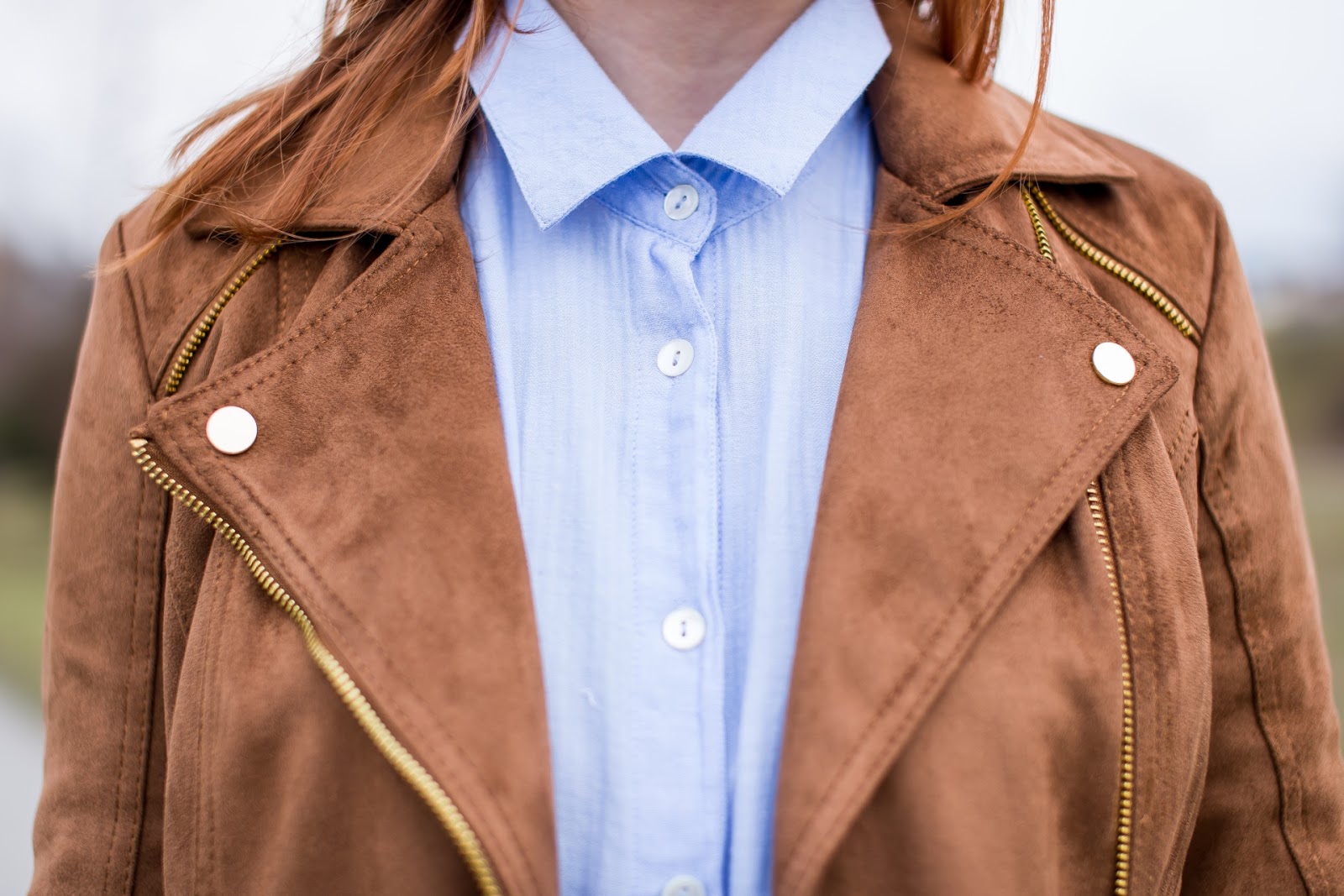 Krásny outfit a veľmi pekne si to zladila♡ bundička je krásna, ale mne by asi prekážalo to,že je semišová!