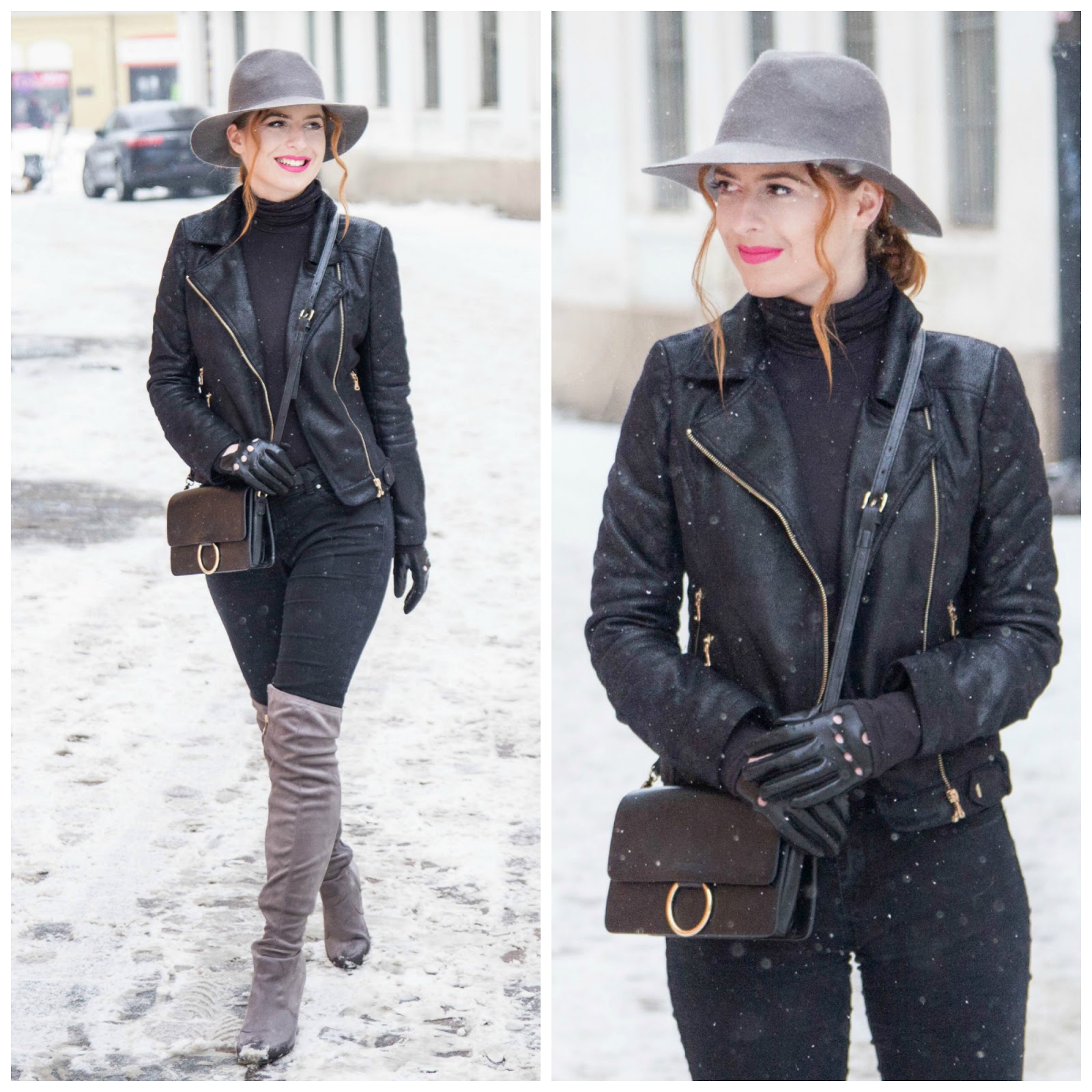 zmena neuškodí. Opäť som stavila na moje tohtoročné zimné stálice – klobúk a čiernu bundu. Viem, že ju tu vídate pomerne často, ale ja sa jej jednoducho neviem