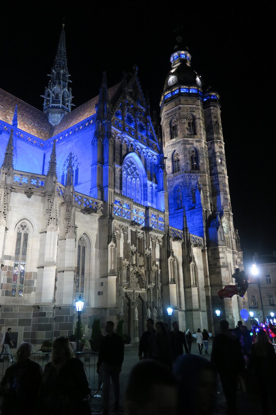 krásne vysvietený Dóm sv. Alžbety počas Bielej noci v Košiciach