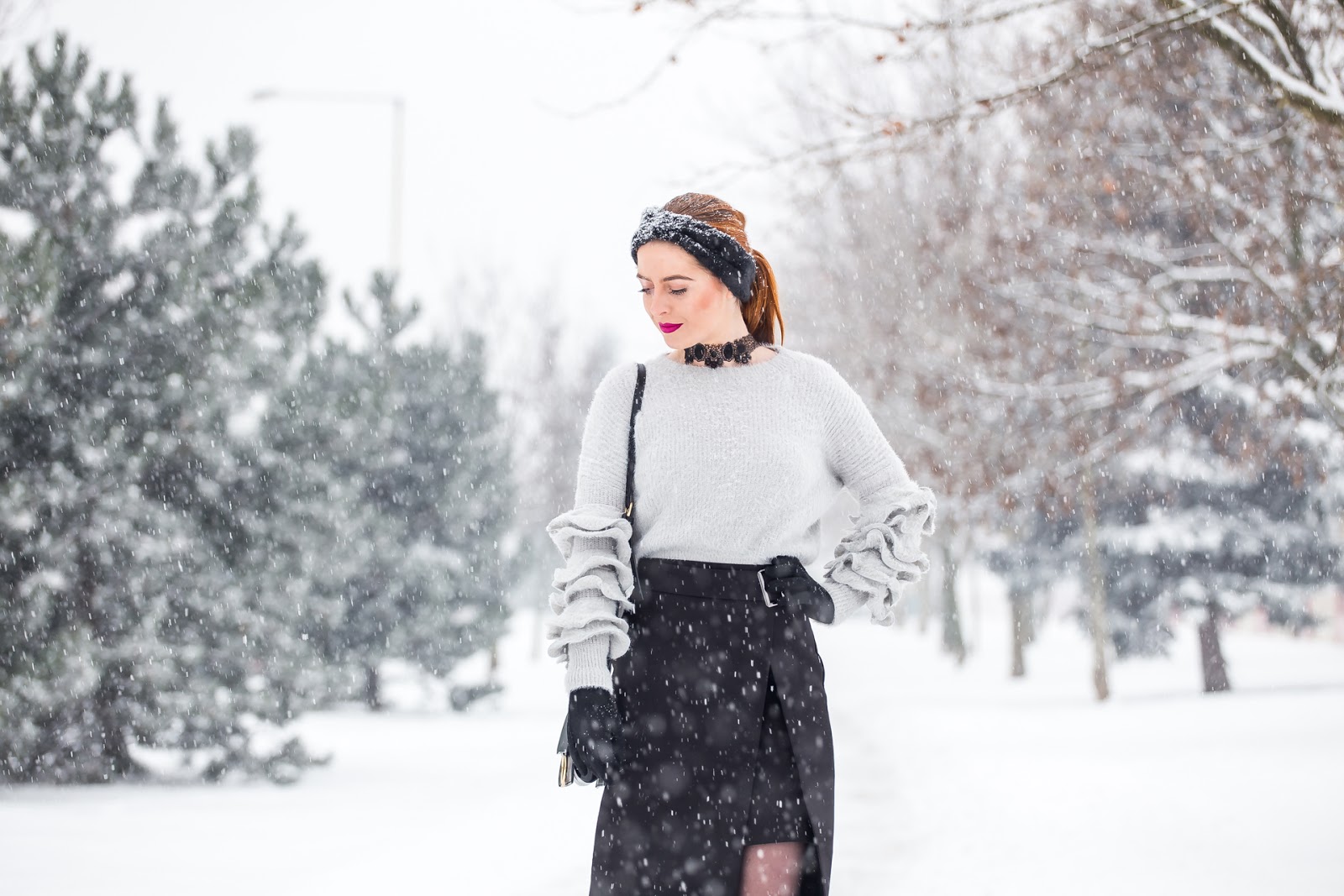 Aaaaaa… nezabudnite si pustiť skladbu Hafanana od Maduaru a zatancovať si. Pretože s týmto sivým svetrom s volánmi to ani inak nejde.