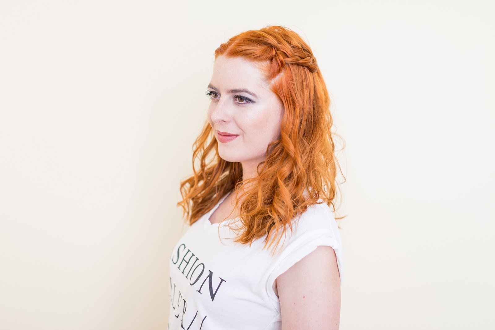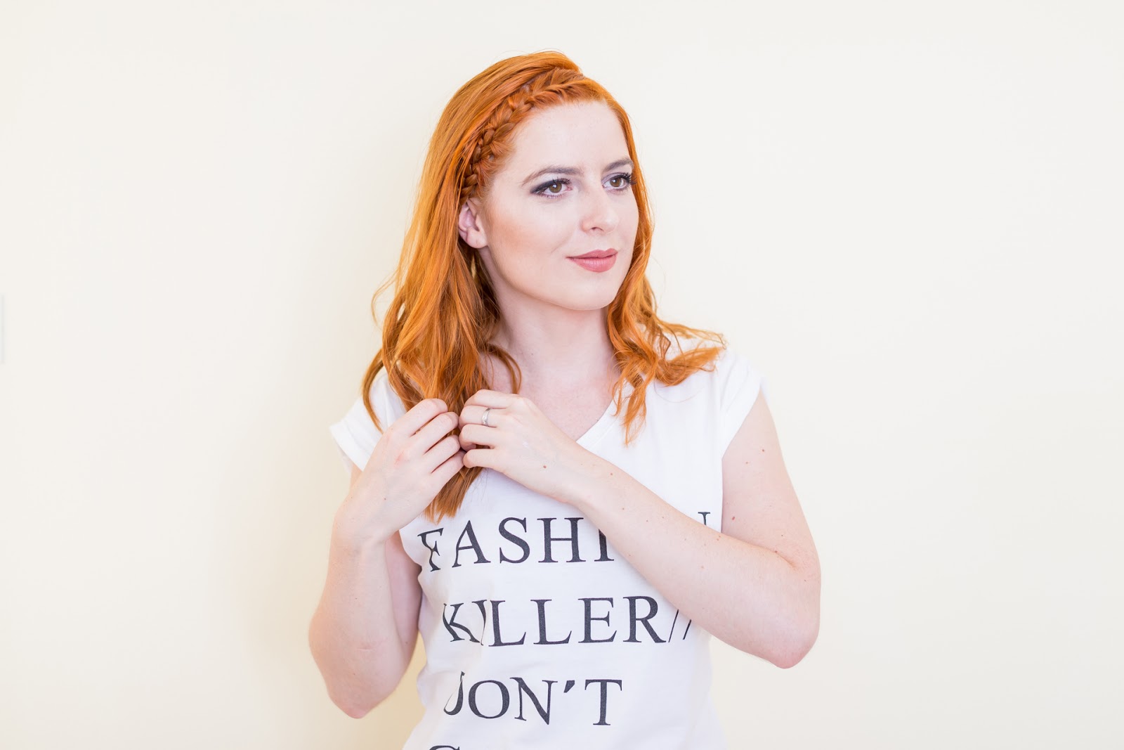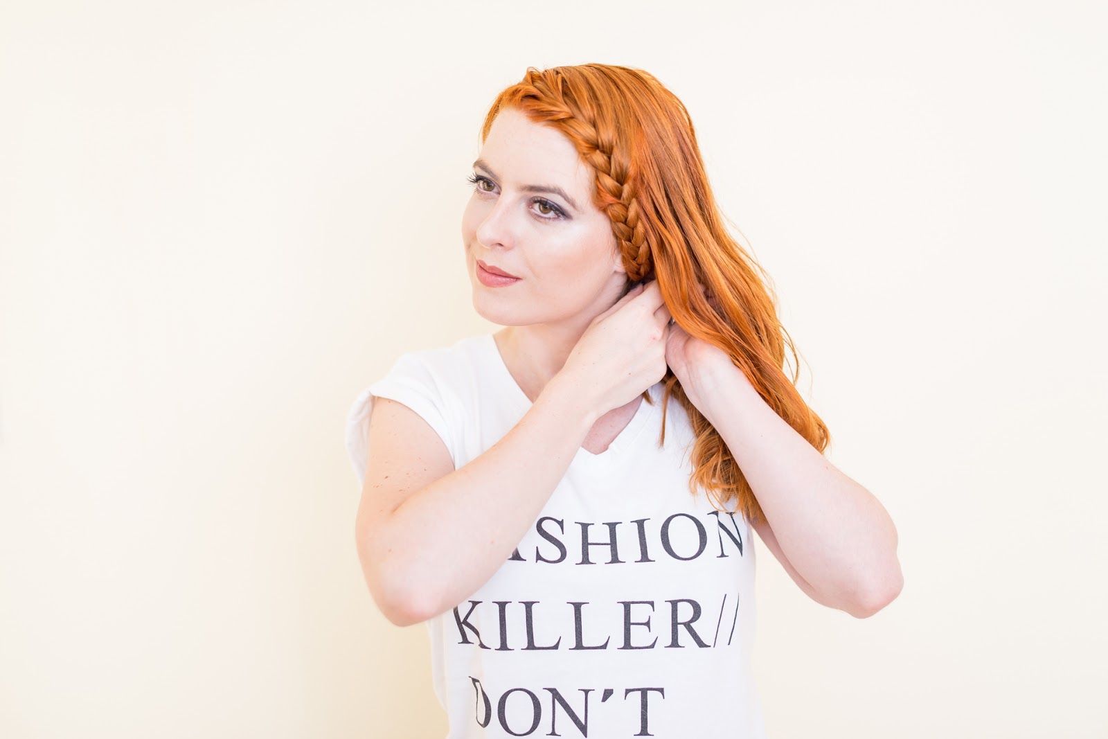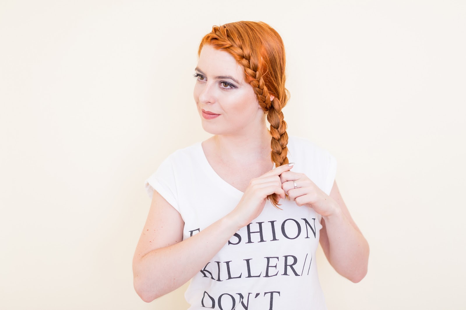 Celú časť vlasov som si zobrala na jednu strana a začala klasickým spôsobom zapletať vlasy.