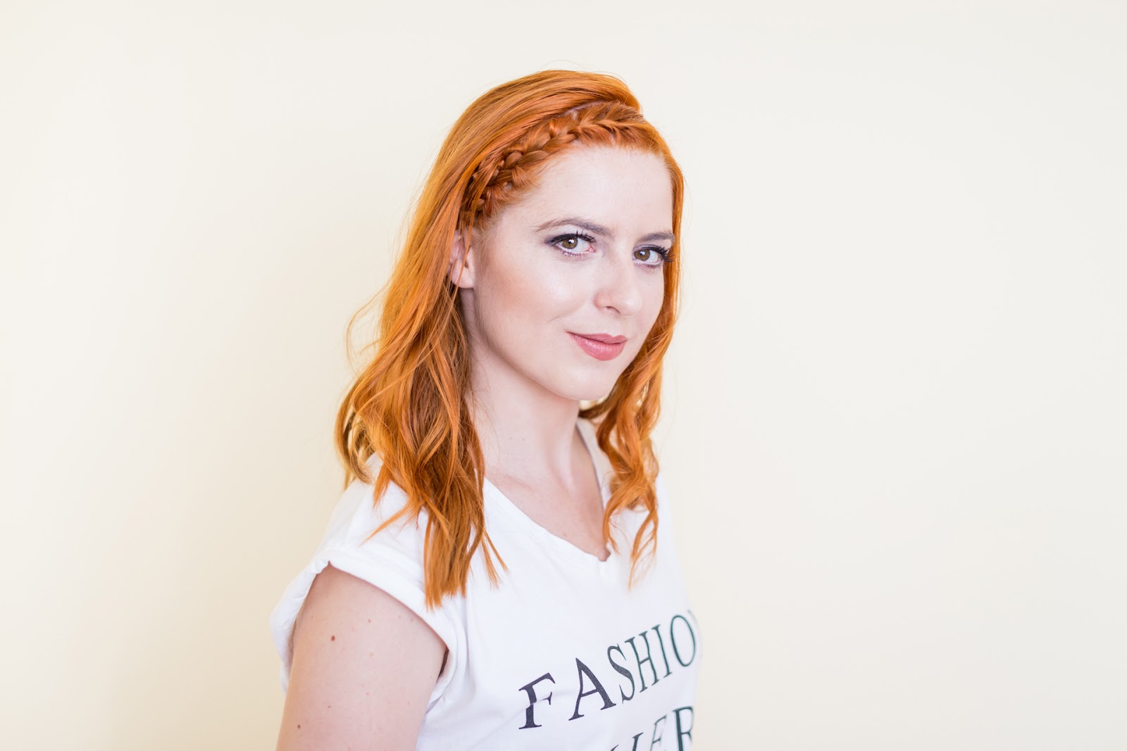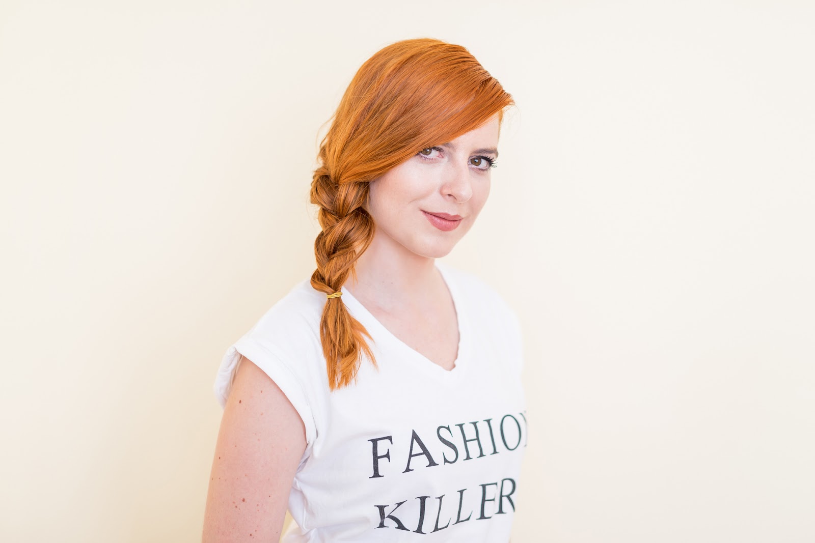 Vytvorila som vrkoč a na konci ho pripevnila gumičkou. Končeky vlasov som jemne rozstrapkala.