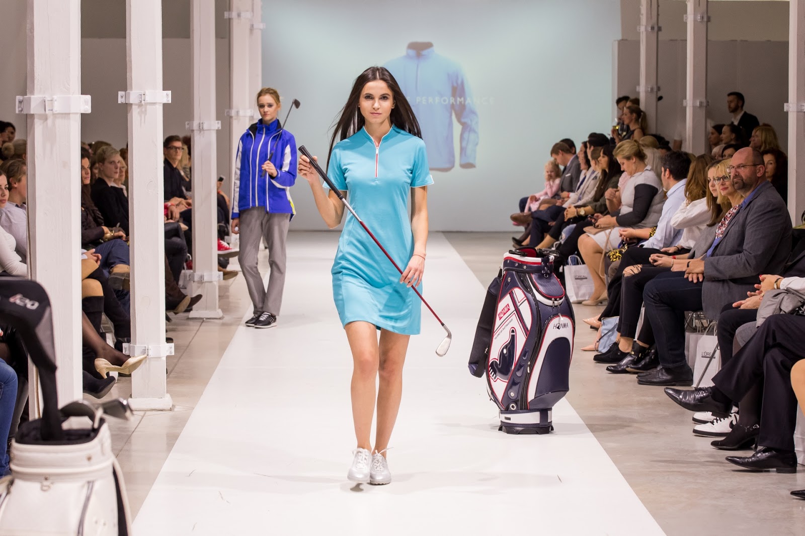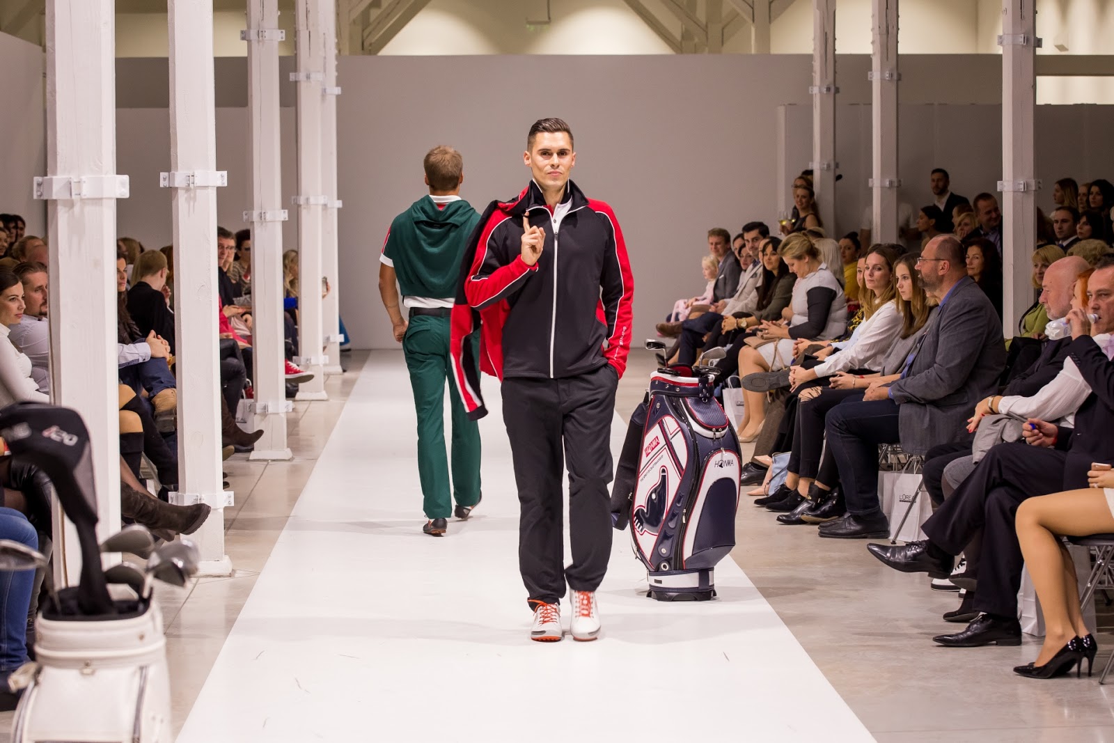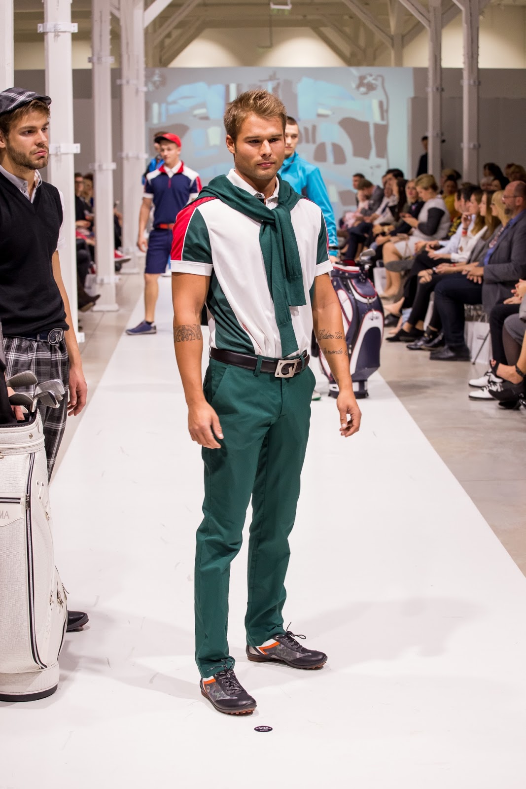 sympatickí modeli s golfovým oblečením na prehliadka Galvin Green – mimochodom, hudba na tejto prehliadke bola dokonalá a perfektne sa hodila do témy