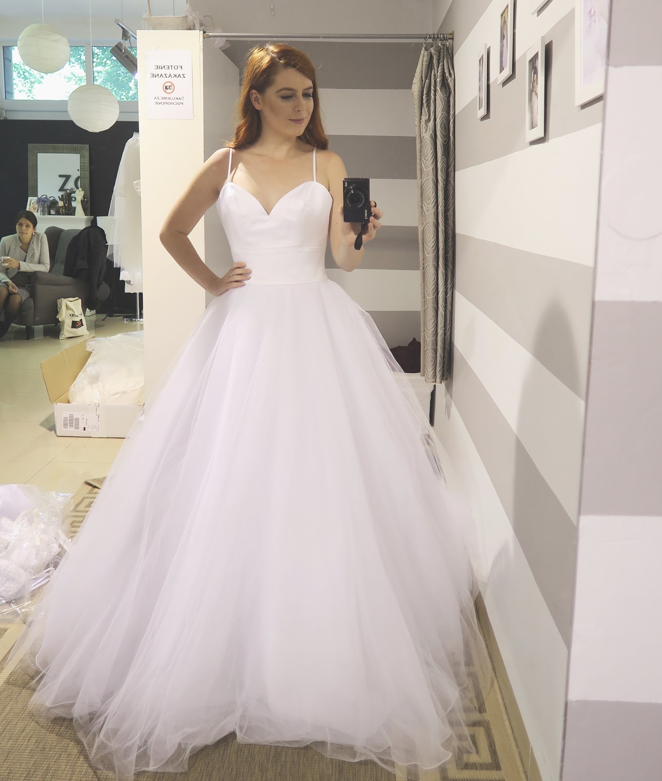V svadobnom salóne ZOYA som si vyskúšala niekoľko šiat so širokou sukňou – jedny úzke obtiahnuté a druhé nádherné mikado. Som fanúšikom posledných dvoch spomínaných a presne tie patria medzi moje vysnívané svadobné. Buď by som volila krásne obopínajúce, aby zvýraznili krivky či môj pás alebo mikado s praktickými vreckami a nádherným lodičkovým strihom. Pri nich som dúfala, že mi budú sedieť a lichotiť postave tak, ako som si predstavovala. Áno, moja predstava sa naplnila a bola som neskutočne šťastná. Sadli ako uliate. Avšak prekvapil ma aj jeden strih, ktorý by som si predtým na fotke vôbec nevybrala, no prekvapil ma na vešiaku. Bol taký atypicko typický. Klasický pre tylovú sukňu a korzet a netradičný vďaka chic strihu a zaujímavému a trochu netradičnému prevedeniu (najmä ramienok). Pripomínali mi baletkovské predĺžené šaty ušité do svadobného štýlu. Boli nádherné, no ďalším favoritom sú mikado. To je láska na prvé, druhé aj tretie videnie a vyskúšanie. Chcem ešte prejsť viacero salónov, pretože by bolo nelogické rozhodnúť sa hneď pre prvé, ktoré nájdem.