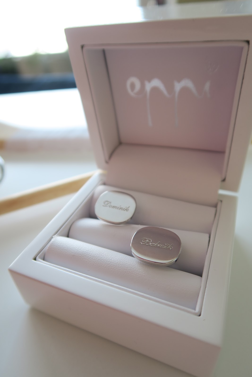 Aj takýto detail dokáže dotvoriť svadobný „outfit“ ženícha. Dominik sa do dnešného dňa zo strieborných manžiet so svojím menom teší. Po svadobnom dni ich začal nosiť aj na ďalšie príležitosti.