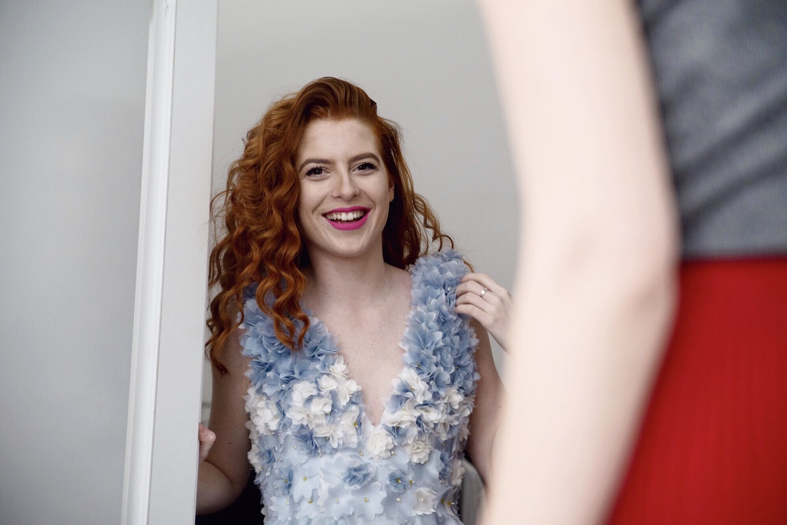 Dnešný prvý záber vznikol v ateliéri ďalšej šikovnej Slovenky žijúcej v Prahe – Lay Sedlákovej. Práve táto talentovaná dievčina ma očarila svojou tvorbou. Neviem sa dočkať mojich druhých svadobných šiat z jej dielne. Ale o tom som ti písala naposledy a viac ti nejdem prezrádzať, nech máš prekvapenie. Zatiaľ ti napíšem len toľko, že budú podobne strihané ako tieto modré, akurát budú pozostávať vo vrchnej časti z čerešňových kvetov (mimochodom, tie budú súčasťou našej kvetinovej výzdoby) a budú skôr bielej farby s jemným nádychom do staroužova. Asi sa ti to predstavuje ťažšie, milý denník, ale ja sa už neviem dočkať. Budú praktickejšie ako prvé šaty na obrad, určite aj extravagantnejšie, ale zároveň budú výborne korešpodovať s motívom našej svadby a priestorom na hostinu.