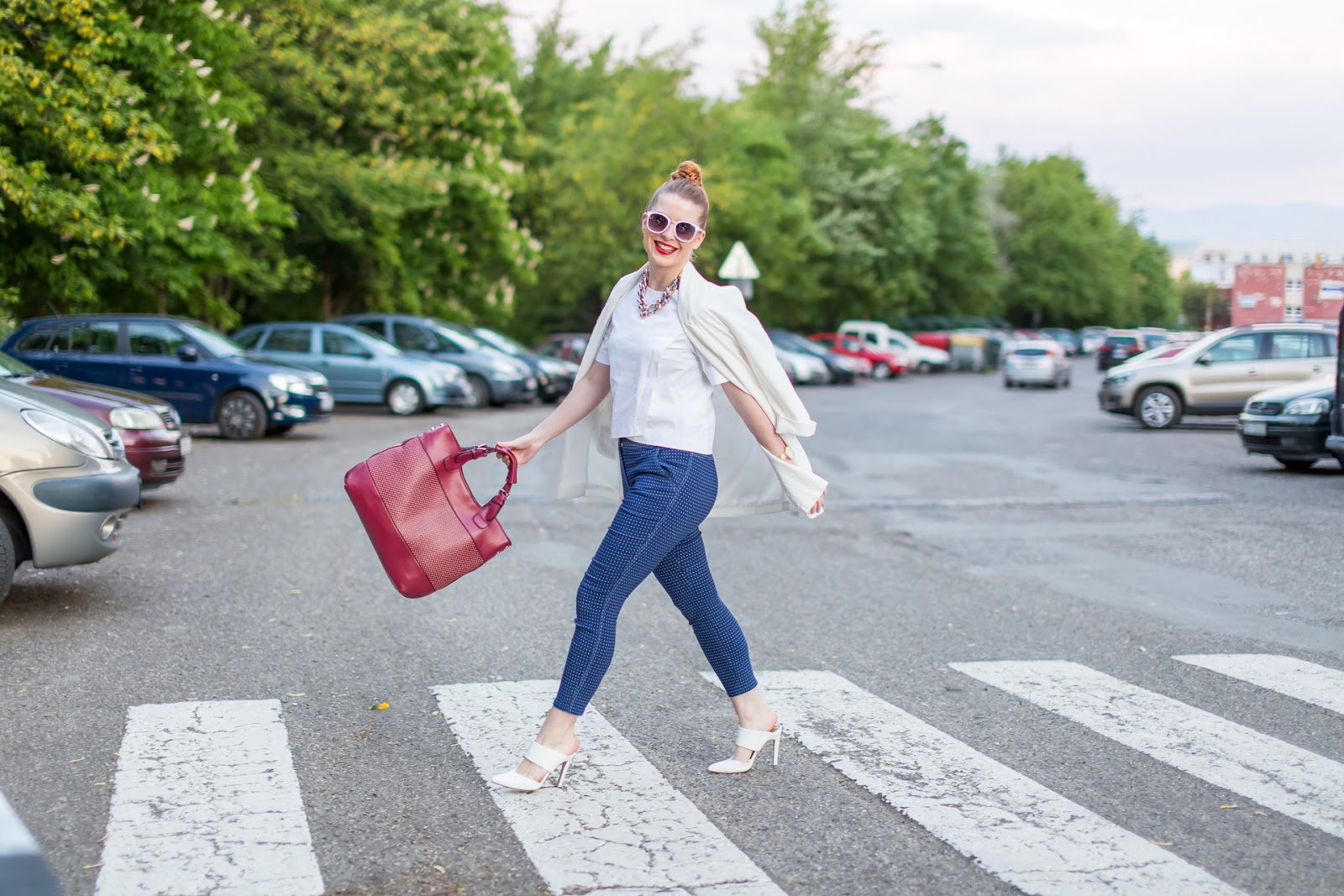nohavice a top – ANDREA MARTINY // okuliare – OKULIARE WAYFARER // náhrdelník – MIKLOSKO FASHION DESIGN // sako – NEXT // kabelka – KRASAVICA.SK // lodičky – CCC