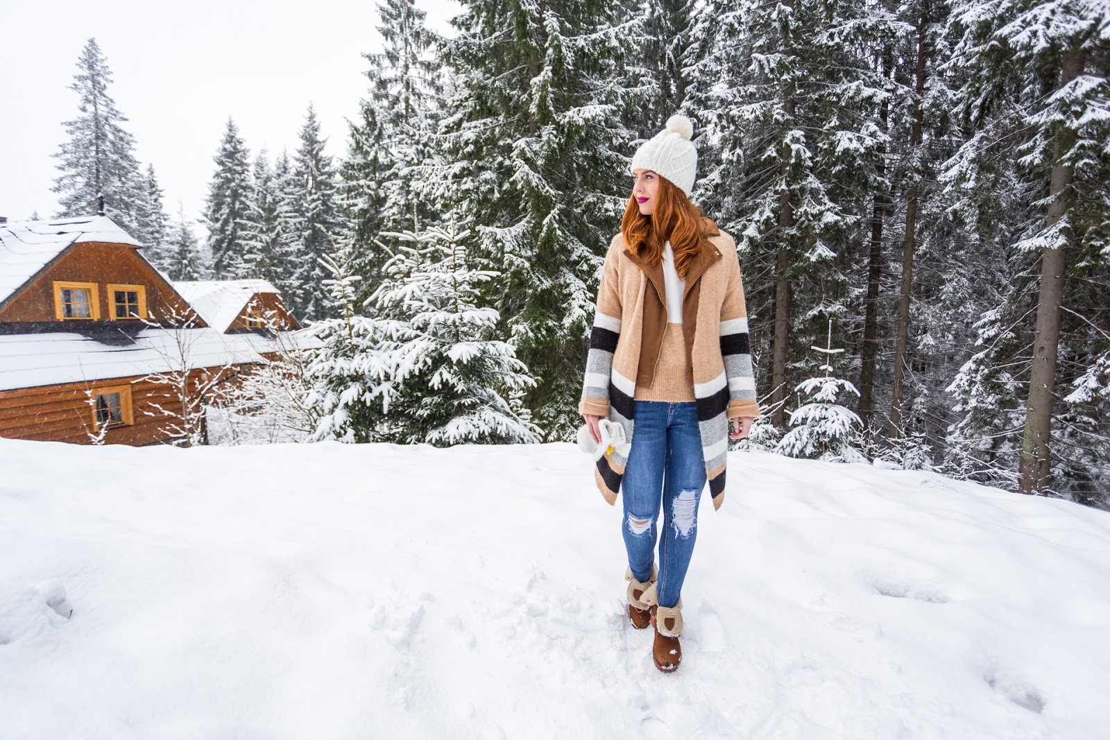 Outfit z dnešných záberov pozostáva z veľkého množstva vrstiev. Aby som si predsa chránila zdravie aj v rámci obliekania, nielen slov. 🙂 Efekt „zababušenej cibule“ (či skôr čoskoro zababušíkovanej cibule) som dosiahla vďaka tielku, tričku, svetru, bundičke a kardigánu a v spodnej časti za pomoci dvoch kusov pančúch, džínsov a teplých ponožiek. Pri farbách som sa sústredila na kombináciu bielej, béžovej, čiernej, sivej spolu s džínsovinou. Myslím, že spolu s úsmevom a snehovými vločkami to vyzerá nad moje očakávania, čo ste potvrdili aj vy pri prvých instagramových „ochutnávkach“ z dnešného fotenia. Ďakujem spolu s autorom fotiek – Dominikom za pozitívnu odozvu. Napriek jarnému počasiu si vychutnajte dnešné zasnežené fotky a užívajte si tieto dni s úsmevom na tvári, bez sĺz a s plným zdravím.